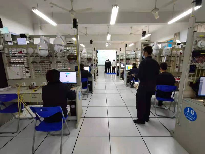 綜合安防系統業務配置及應用競賽面向安全防範系二、三年級學生,專業不限。競賽時間為2021年12月8日周三 下午13:00~16:00,競賽場地為安防設備安裝與系統調試實訓室。競賽過程中,劉桂芝、汪海燕、萬敏三位老師秉持客觀、公平、公正的原則,嚴格遵守工作規範,層層把關,落實好裁判工作的每一環節,确保各項工作有條不紊地進行。各參賽隊員賽前積極準備,在賽場上都以飽滿的狀态、昂揚的鬥志和精神投入到競賽當中。此競賽成功的提高了同學們的實戰技能,培養學生團隊協作意識、工匠精神和創新精神,又展現我院學生“積極向上、追求卓越”的精神風貌,并營造學技能、練技能、比技能的校園文化。
