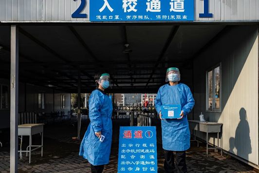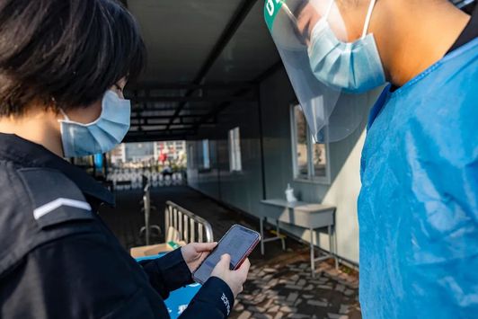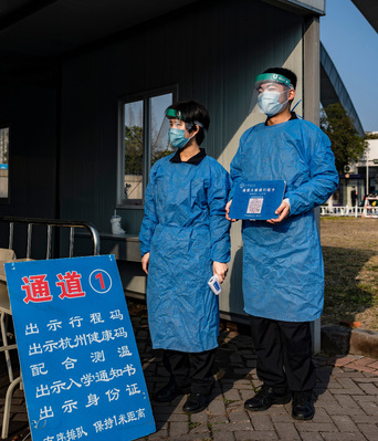 過了測溫“關卡”,每一位同學都換上了浙警院提供的新口罩。下一步,志願者們仔細确認每位同學的行程碼以及健康碼,及時找出曾經過中高風險地區的同學,阻斷感染的可能性。
