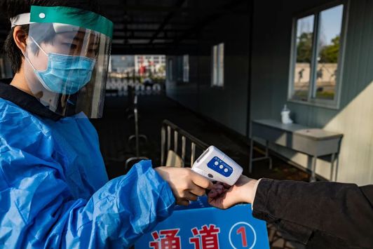 疫情當下,我們從未松懈!2月25日返校當天早晨,志願者們早早地等候在浙警院門口臨時搭建的藍棚下。每每有人即将進入校園,志願者都會為其測量體溫,确保進入校園時無發燒症狀。